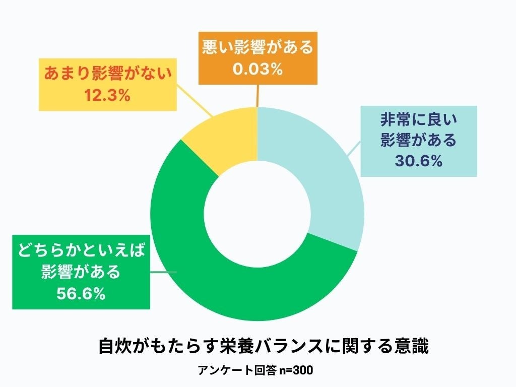 このアンケート結果からは、自炊が健康や栄養バランスに与える肯定的な影響に対する強い認識が見て取れます。