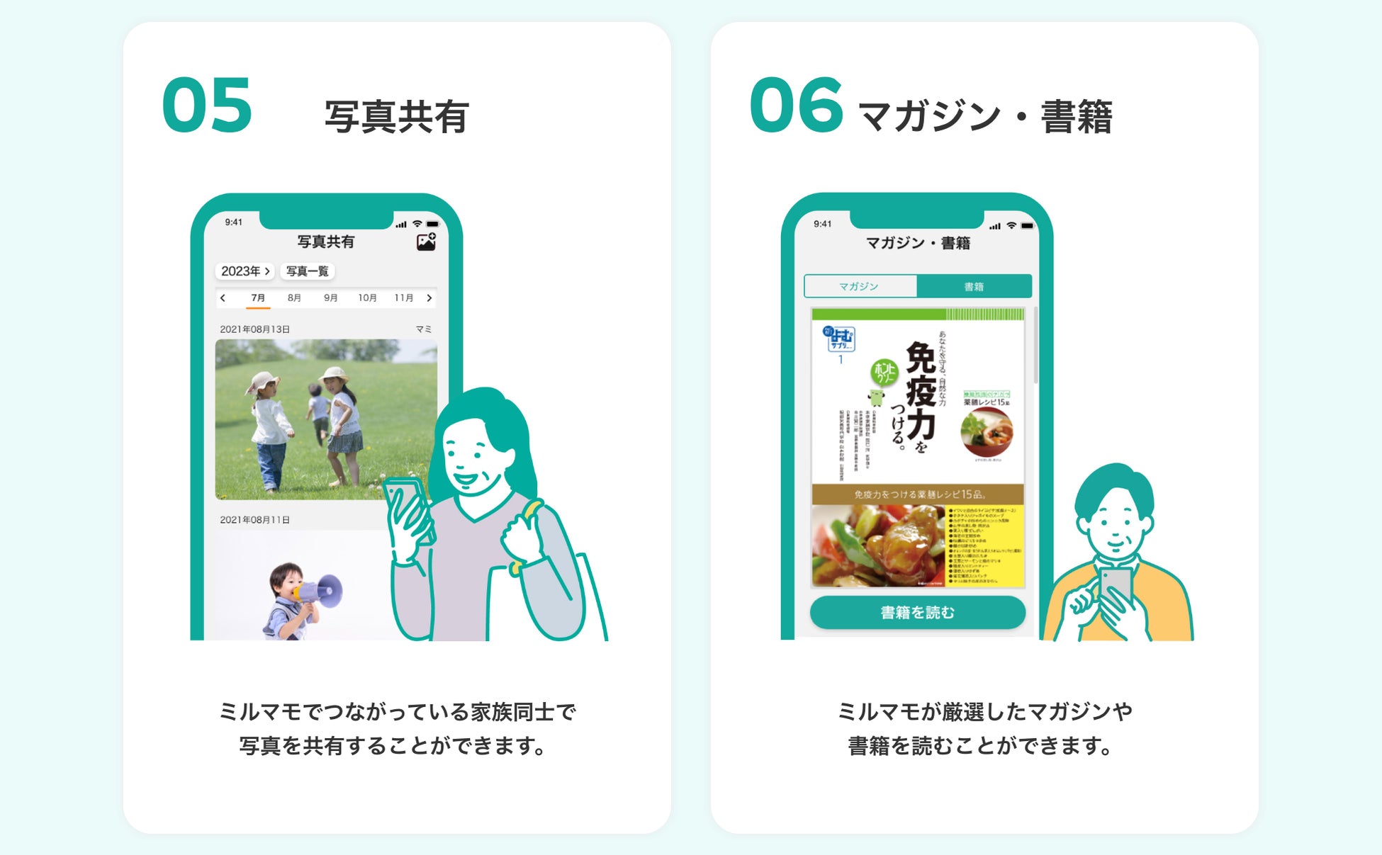 健康や食事などをテーマに、ミルマモが厳選したマガジンや書籍を無料で読むことができます。
