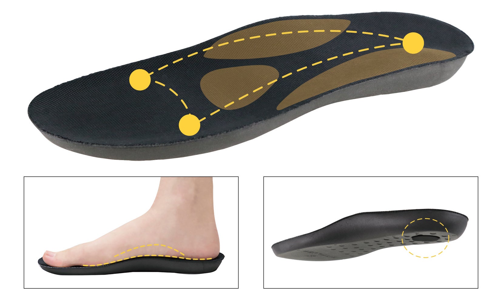 整骨院監修、3点アーチを支えるインソールで足元からサポート、自然体で仕事に取り組める
