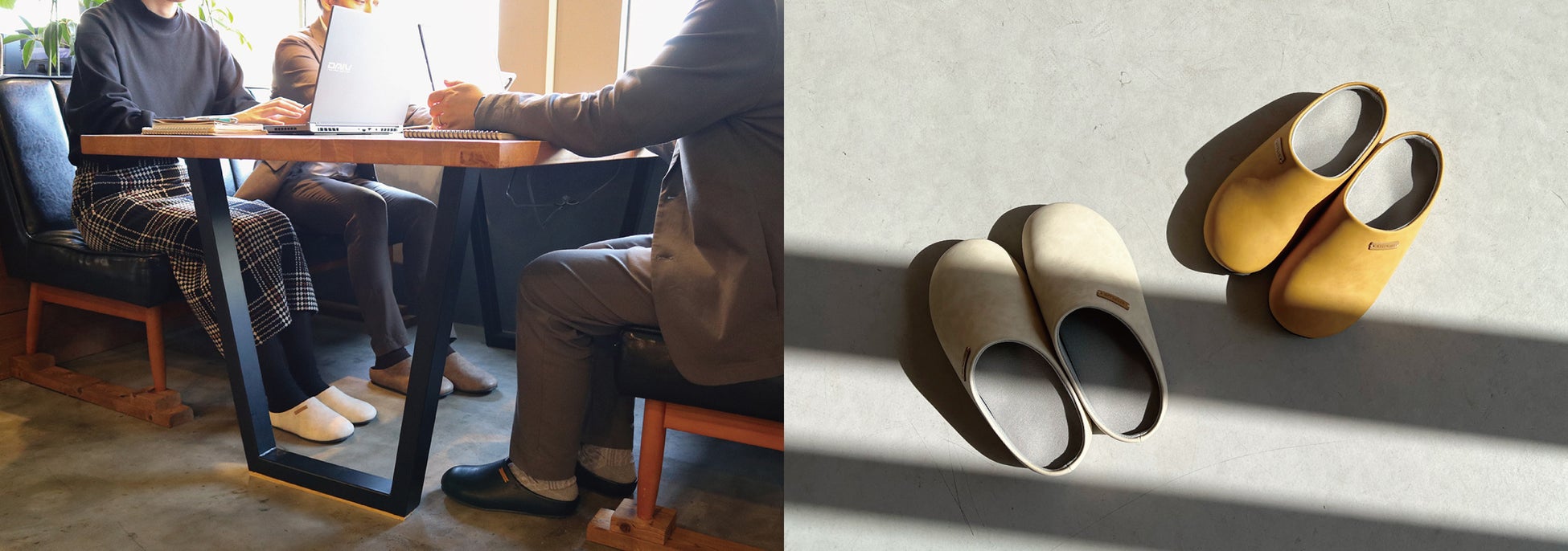 朝倉商会は、毎日の暮らしのそばにあるフットウェアをデザイン・製造・販売する会社です。「履き心地が良く、気軽に使ってほしい」「手軽にフットウェアを楽しんでほしい」これらの想いを大切に、皆さんのライフスタイルに寄り添うフットウェアを目指し、モノづくりを行っています。