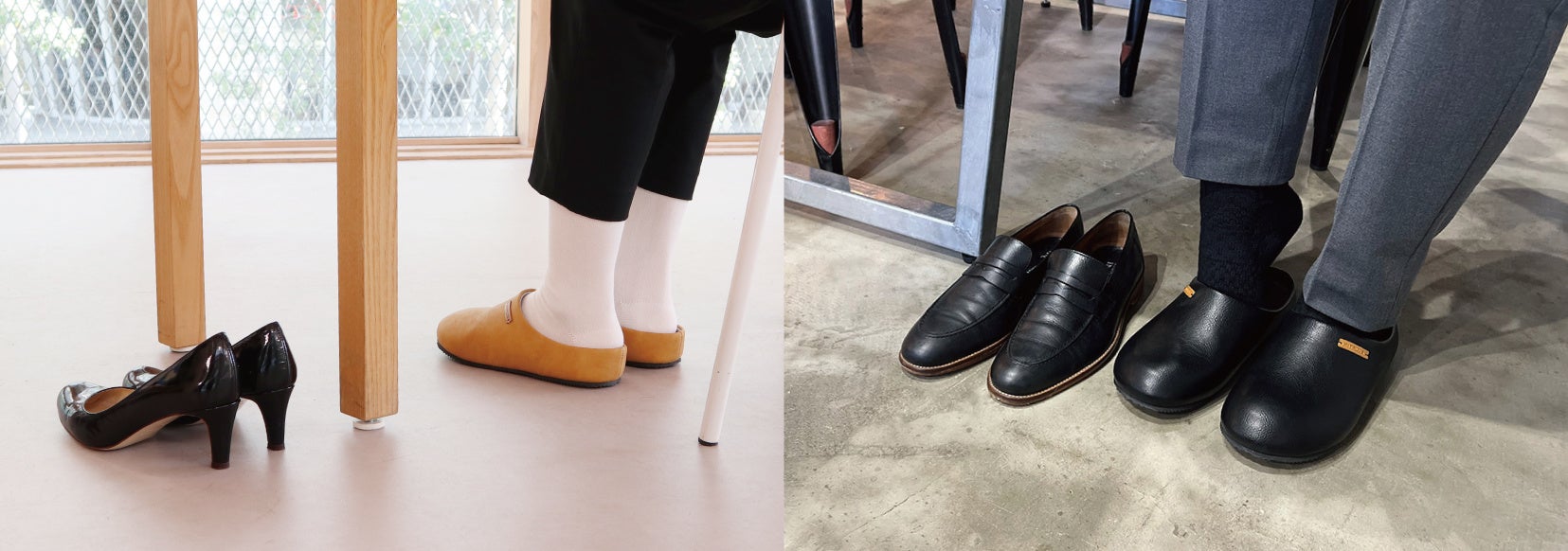 オフィスで履き替えることで、革靴やパンプスを休ませることができ、劣化につながる汗ムレを軽減。靴の寿命を長持ちさせることができます。