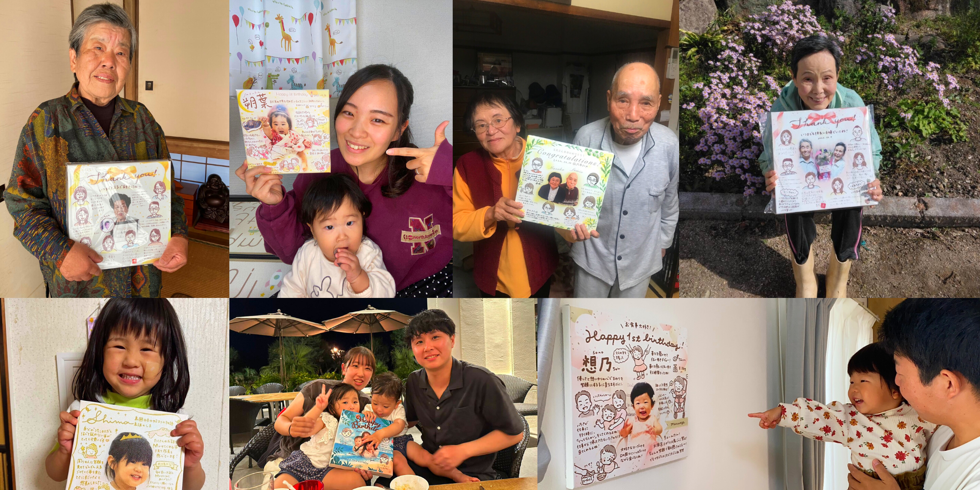 「ふぁみしゃ」とは、子供から親、孫から祖父母、パートナーに対して、大切な思い出やお互いへの感謝のメッセージをヒアリングし、プロのデザイナーが一枚ずつ手描きで描くオーダーメイドギフトのことです。