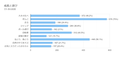 今回の調査では、他に『お子さまに最も伸ばして欲しい能力は?基礎的能力、社会性からそれぞれ二つ選んでください。』という質問を行い、子どもの発育に対して、ママが重要視している項目についても806名全てのママから回答を頂いています。