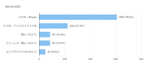 今回の調査では、人気のミラーレス一眼レフカメラを10.4%が利用しています。通園・通学に伴う行事などによって、望遠撮影の需要が高まり、成長とともに一眼レフカメラの需要が高まるようです。