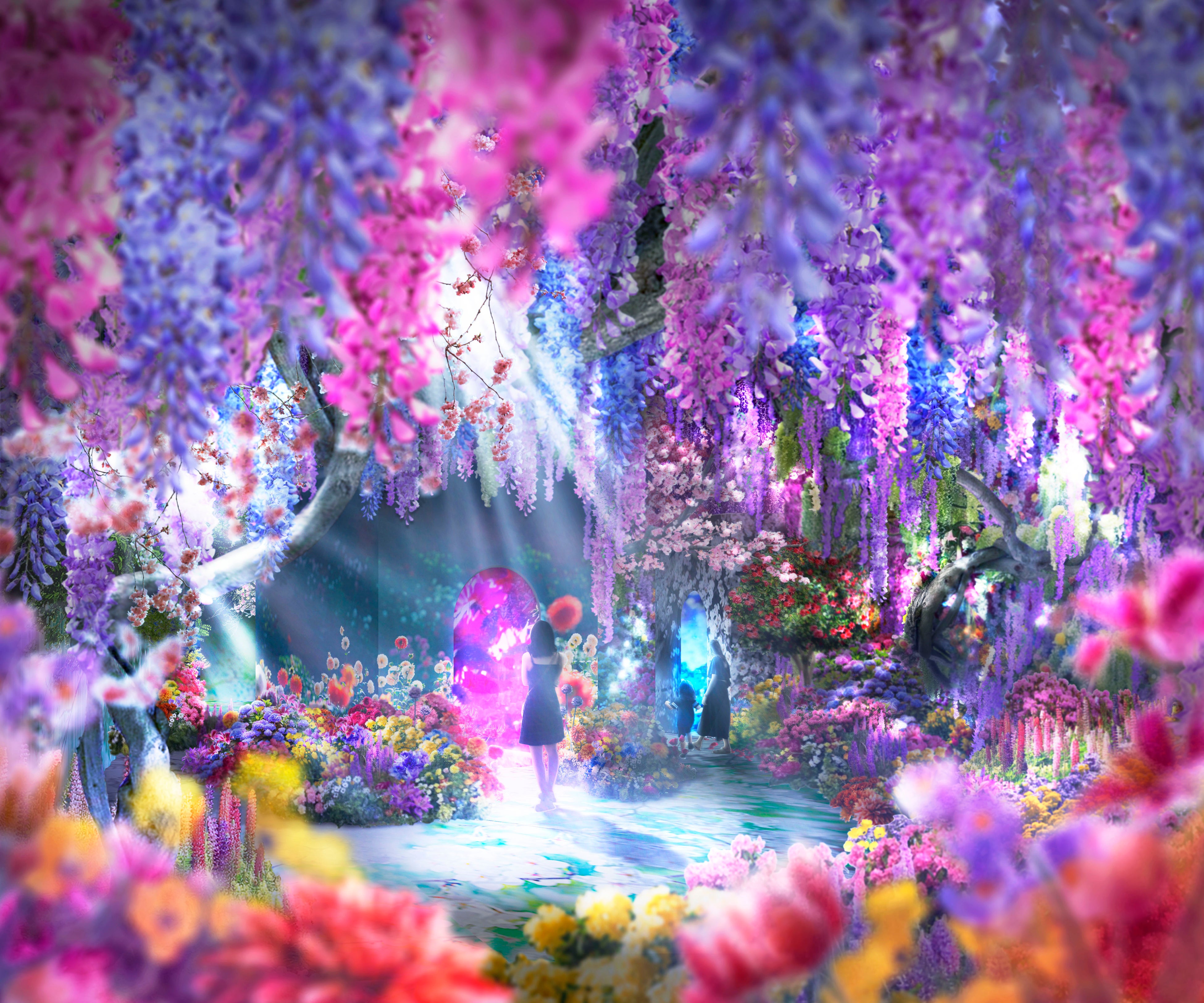 今回の展覧会は、すべて本展のために制作した映像によるインスタレーション、立体展示などで構成されています。100万色の光彩色に彩られた、まるで桃源郷のような世界を五感でよろこぶイマーシブ体験です。