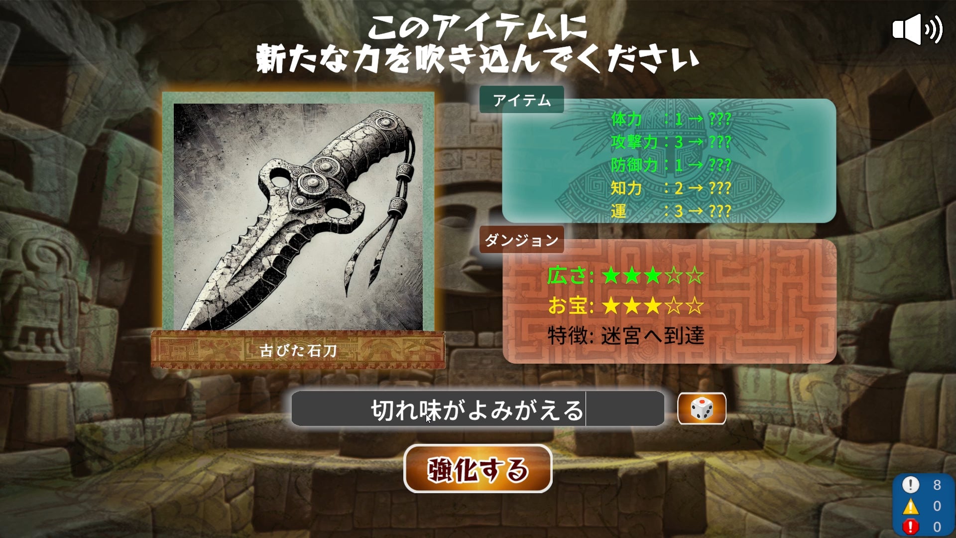 あなたが入力した言葉から、モリックが挑むダンジョンとアイテムが生成されます。