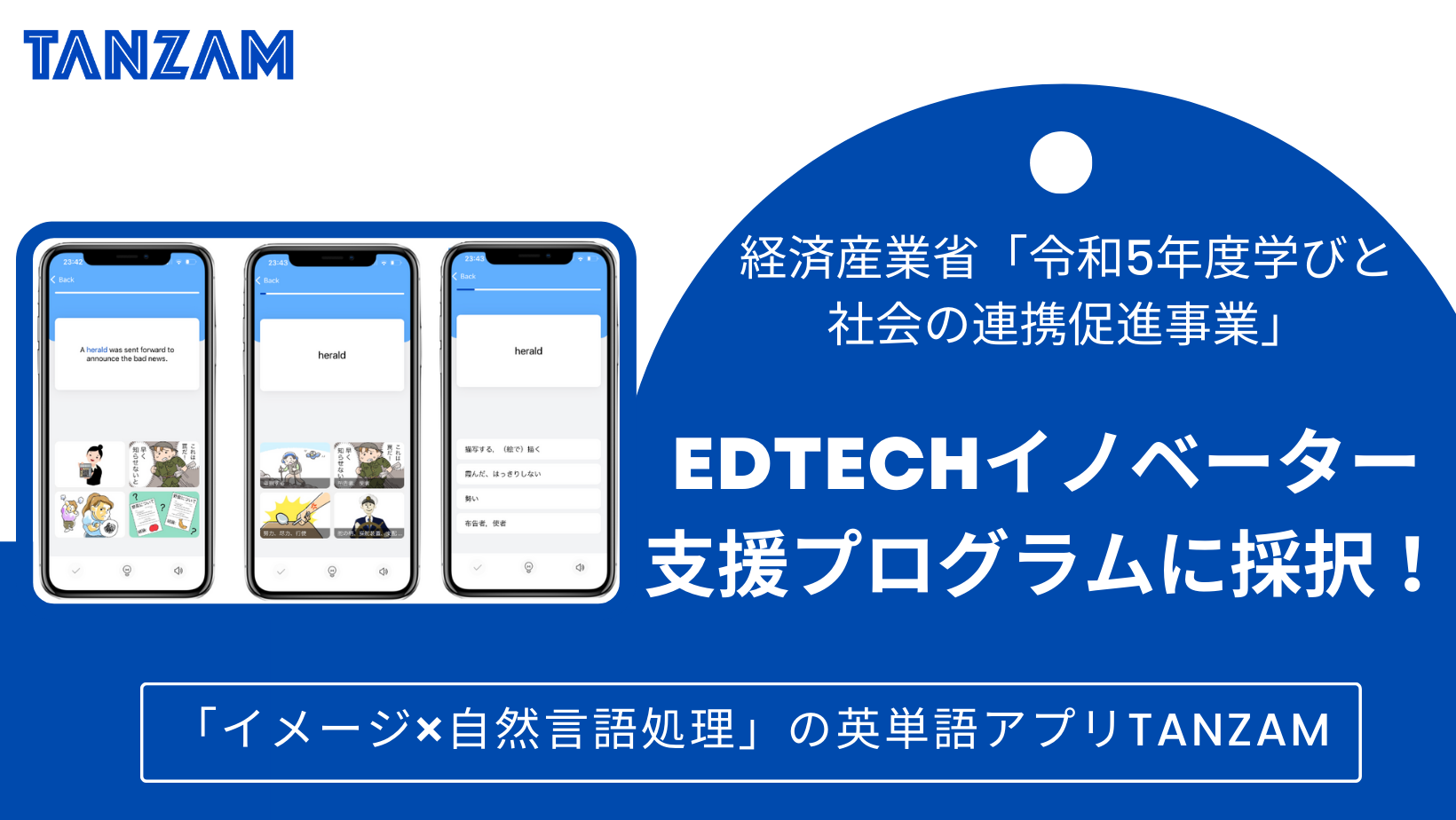 【単語学習の最適解『TANZAM』!イメージ×自然言語処理で覚える英単語アプリ】経済産業省のEdTechイノベーター支援プログラム(Edvation Open Lab:EOL)に採択されました!