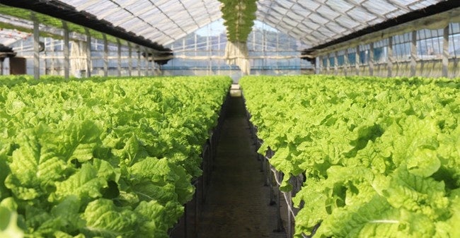 水耕栽培ですくすくと育つサンチュ