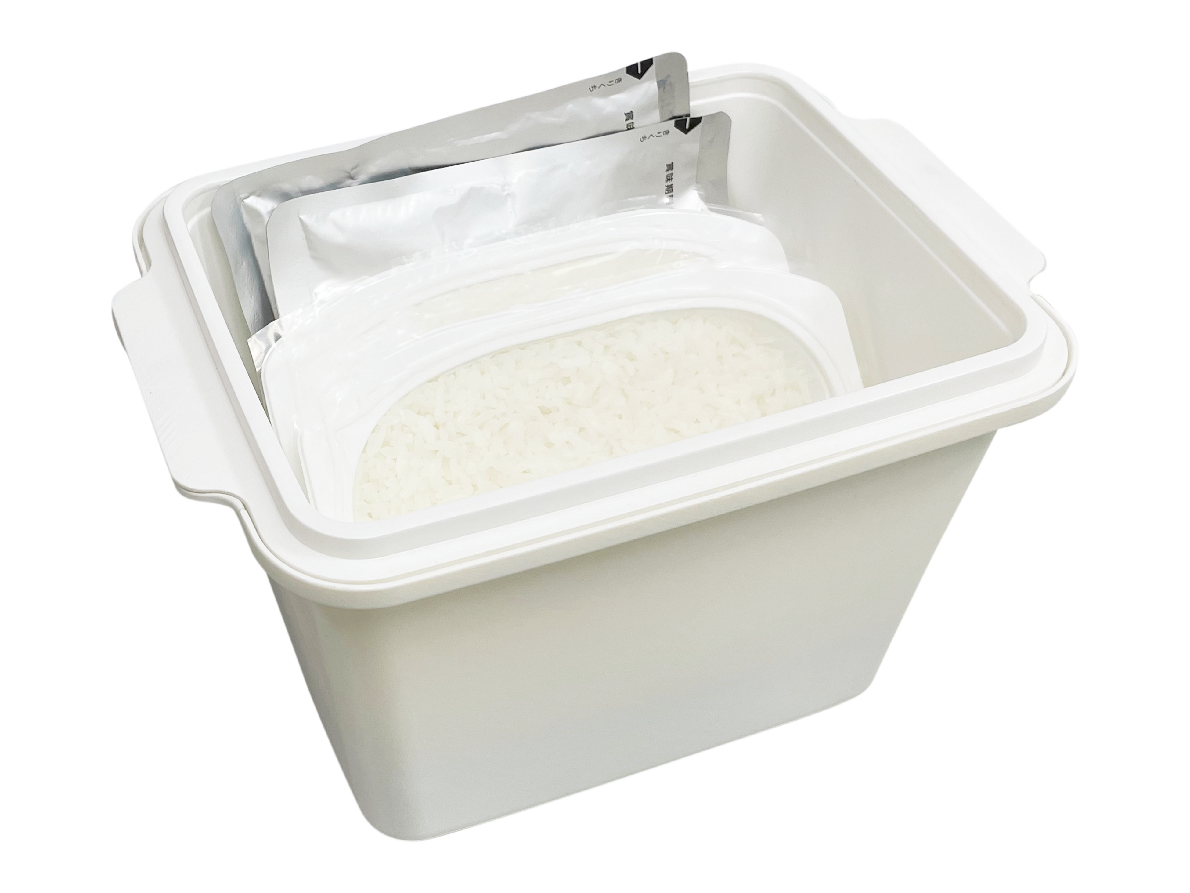 普段は食品の収納容器として・・・いざという時には"水だけで"温め可能な加熱容器に!