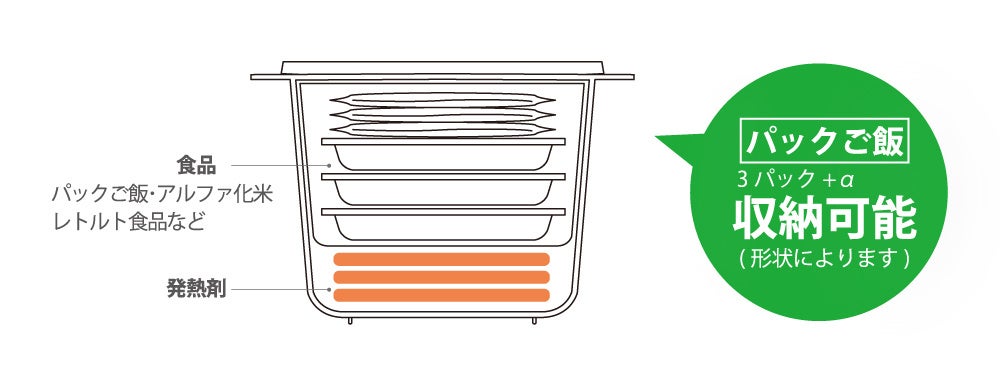また食品を入れたボックスを持ち出せばレジャーシーンで火や電気を使うことなく温めることができます。