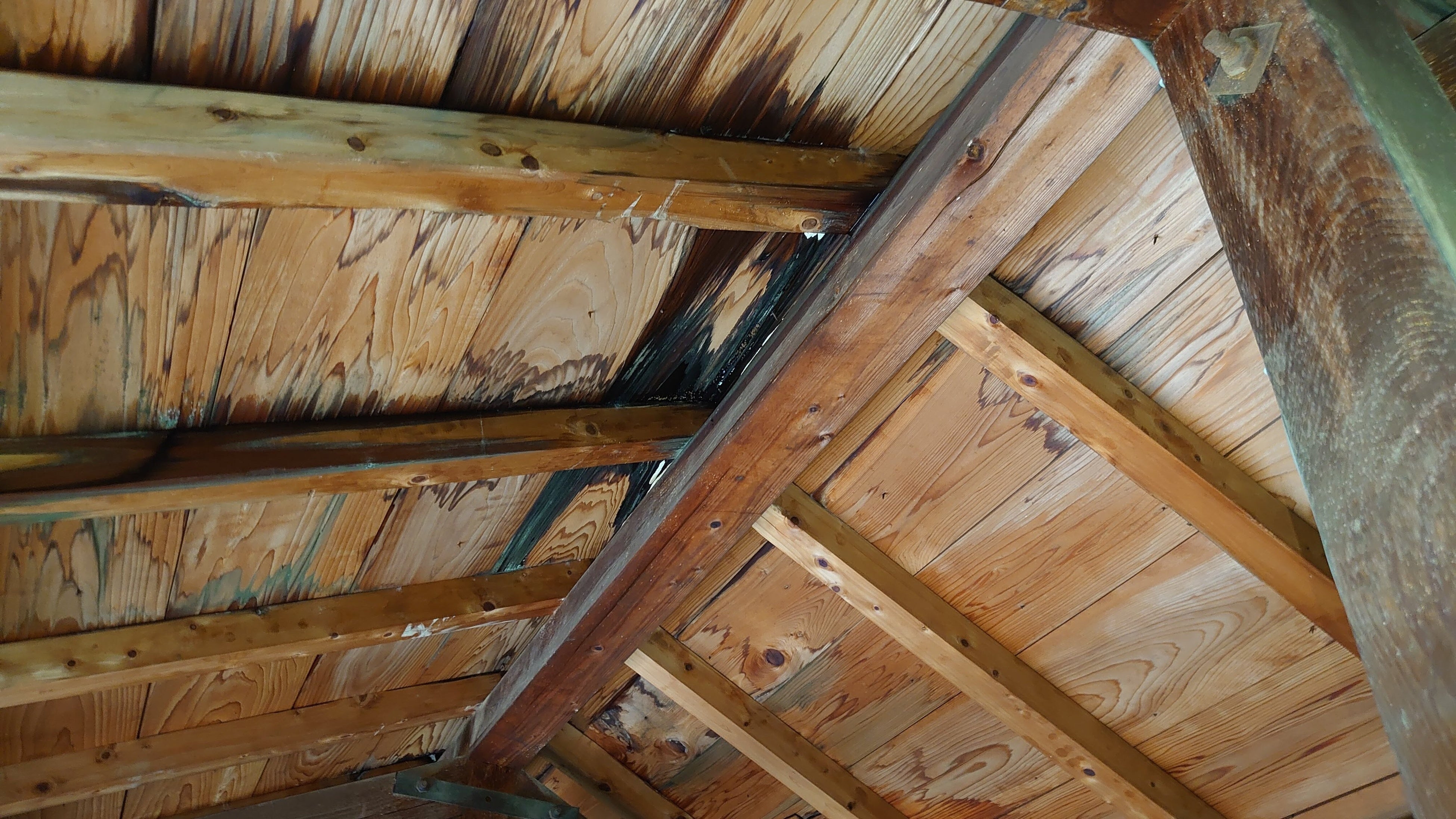 外気で冷えた屋根に室内の温かい空気が接して結露し、屋根裏を腐らせます。