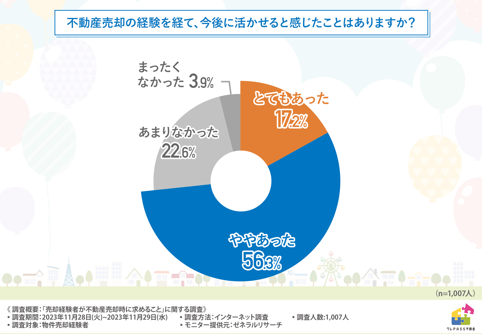 約7割の方が不動産売却の経験を今後に活かせると感じた!