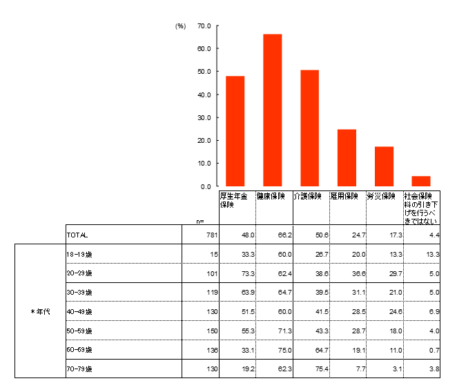 Q10 Q9で社会保険料の引き下げに「賛成である」「どちらかというと賛成である」と回答した方に質問します。あなたが引き下げるべきと考える社会保険料をお教えてください。