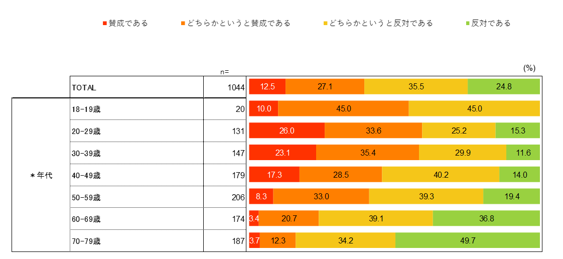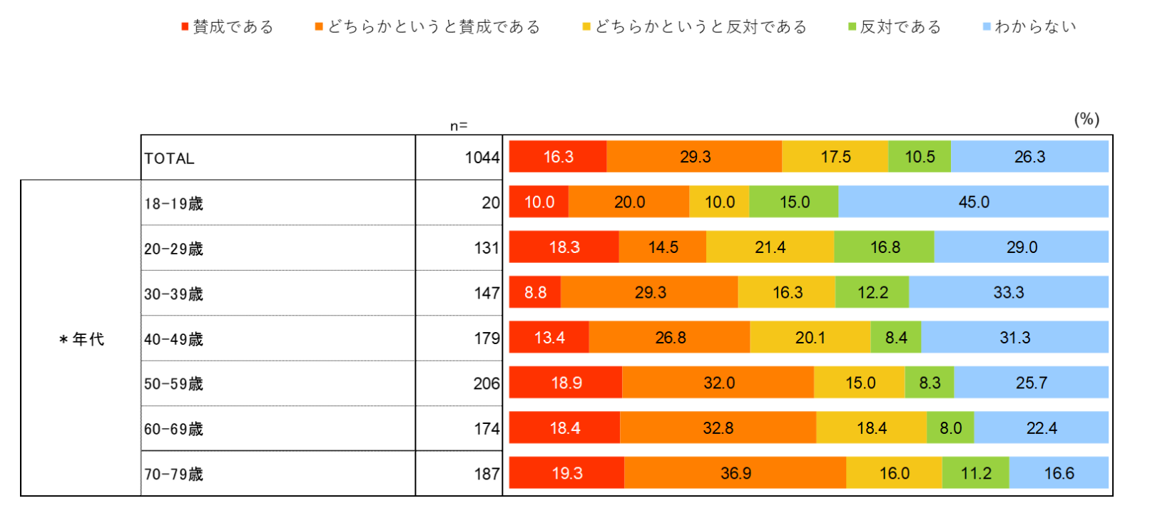 ・社会保険料の引き下げについては全世代肯定的な評価を下しているものの、後期高齢者の窓口負担3割引き上げについては高齢者を中心に根強い反発があり、「反対である」「どちらかというと反対である」合計は60代・75.9%、70代以上・83.9%が存在しています。