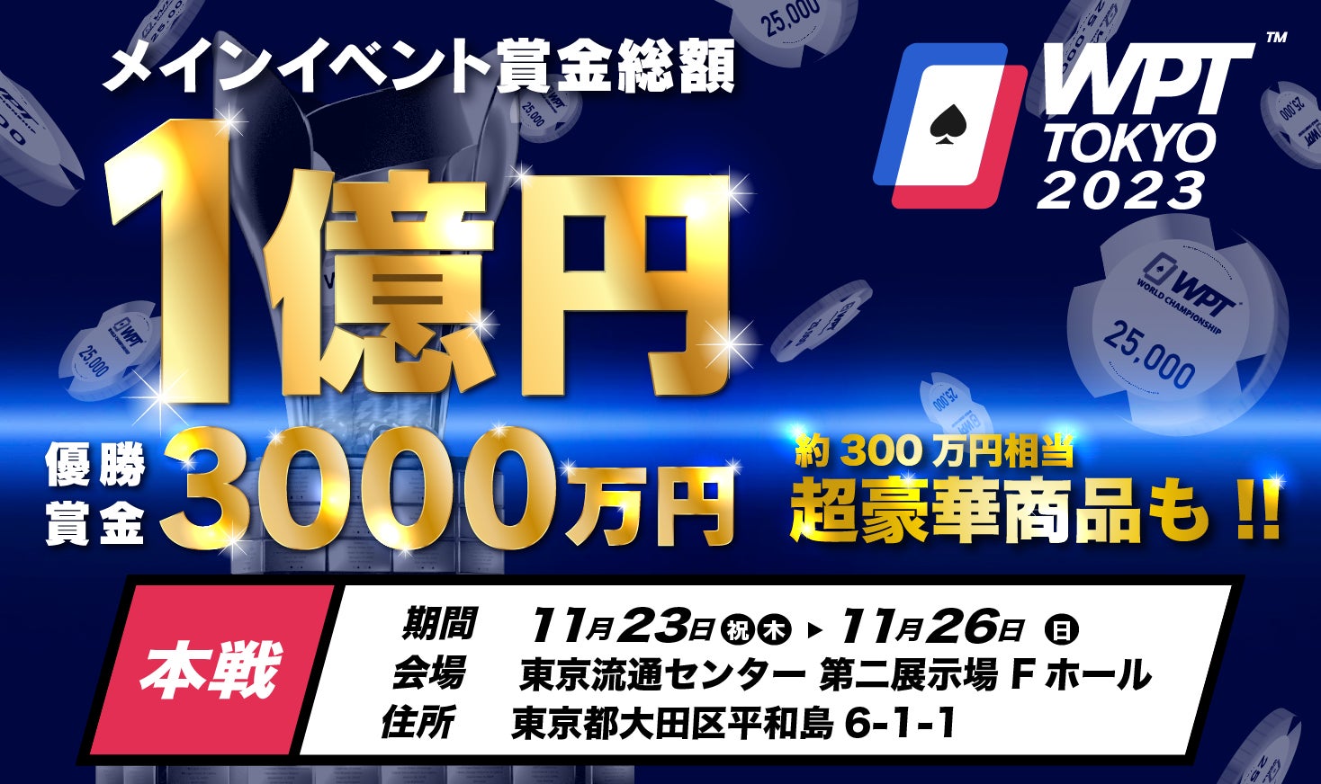 賞金総額1億円!世界三大ポーカー大会であるWPTが日本で開催!「WPT東京2023」【11月23日〜26日】開催に関するご案内