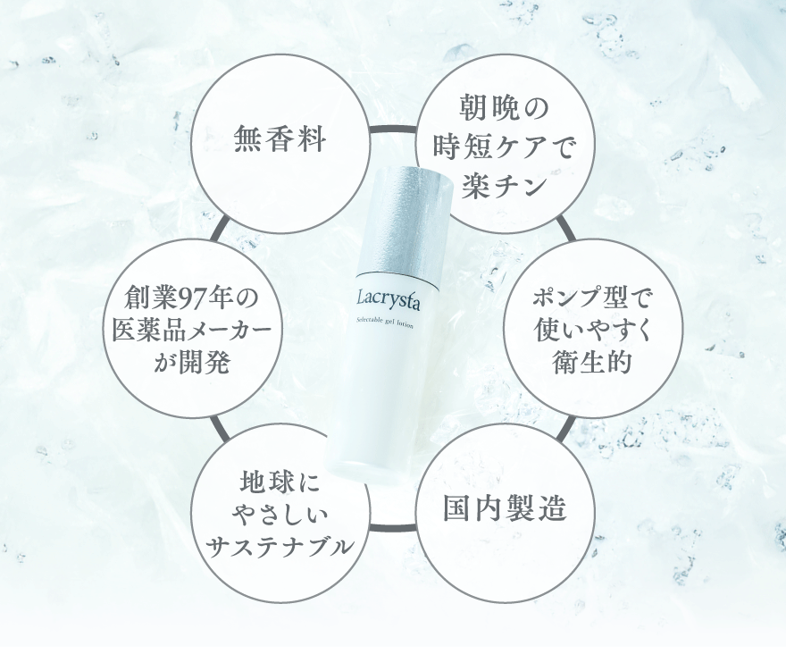 『Lacrysta(ラクリスタ)』は、⼥性の肌に秘めるさらなる美しさを引き出し、⾃⼰表現をサポートしたいという想いから誕⽣しました。その中でプライベート・仕事・家事・育児などを頑張っている活躍世代女性向けの化粧品が、ラクリスタ セレクタブルシリーズです。