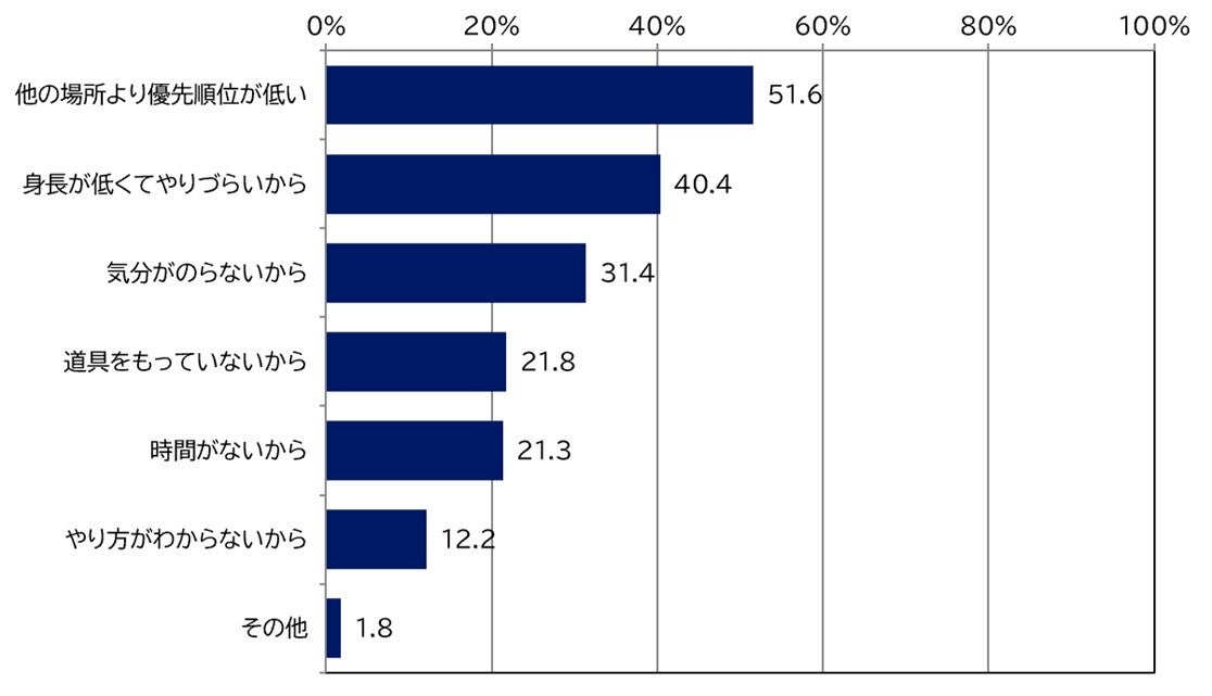 ■普段高いところの掃除は7割ができていない。理由は「優先順位」と「身長」「気分」