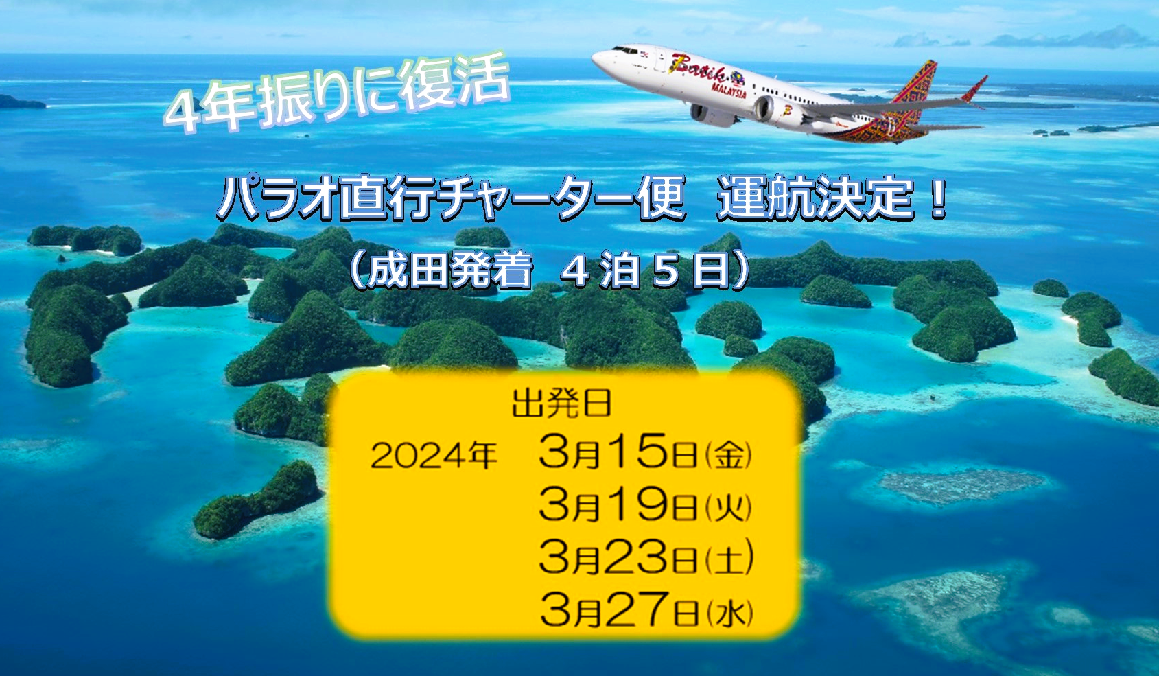 2020年3月以来4年ぶりとなる「パラオ直行チャーター便」運航のお知らせです