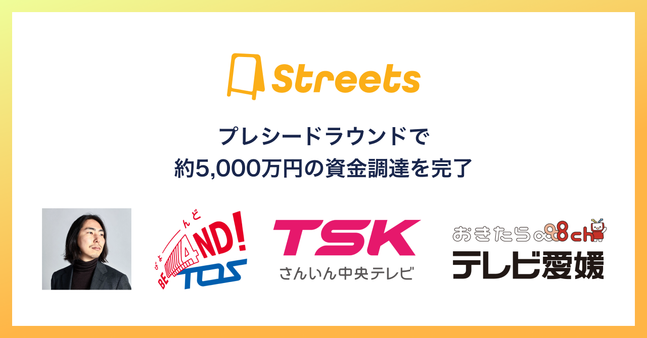 ストリーツ株式会社、プレシードラウンドで深津貴之氏・ローカル放送局三社から約5,000万円の資金調達。生成AIによるメディア支援とアプリによる地域の情報流通活性化を推進。