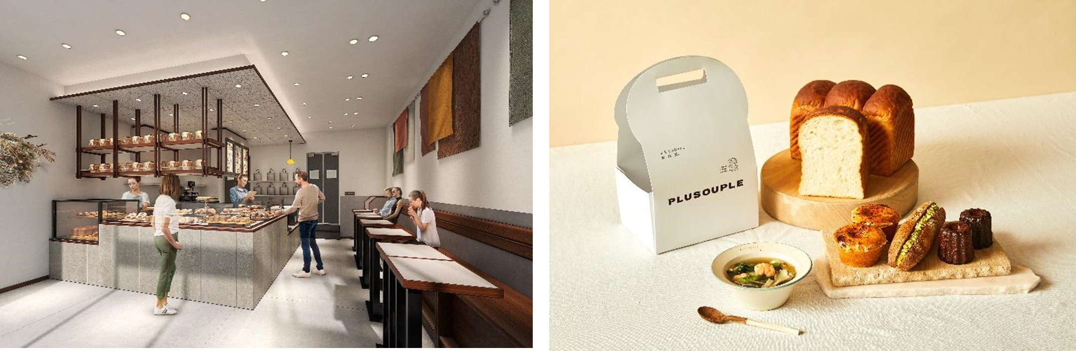 また、昨今注目を集める“駅ナカ”需要に着目し、JR御茶ノ水駅に新しく開業する「エキュートエディション御茶ノ水」内に出店することで、より多くのお客さまに「PLUSOUPLE」のおいしさをお届けします。「PLUSOUPLE」の想いはそのままに、“駅ナカ”でも、その場で生地から焼き上げた、できたてのパンを提供いたします。