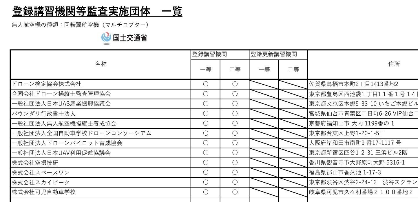 無人航空機の操縦者技能証明制度が昨年12月5日から開始されました。登録講習機関とは、その技能証明制度を支え、操縦者の育成講習を行う施設です。現在、全国各地に散らばっているドローンスクールのうち、すでに500以上の団体が登録講習機関に登録されております。