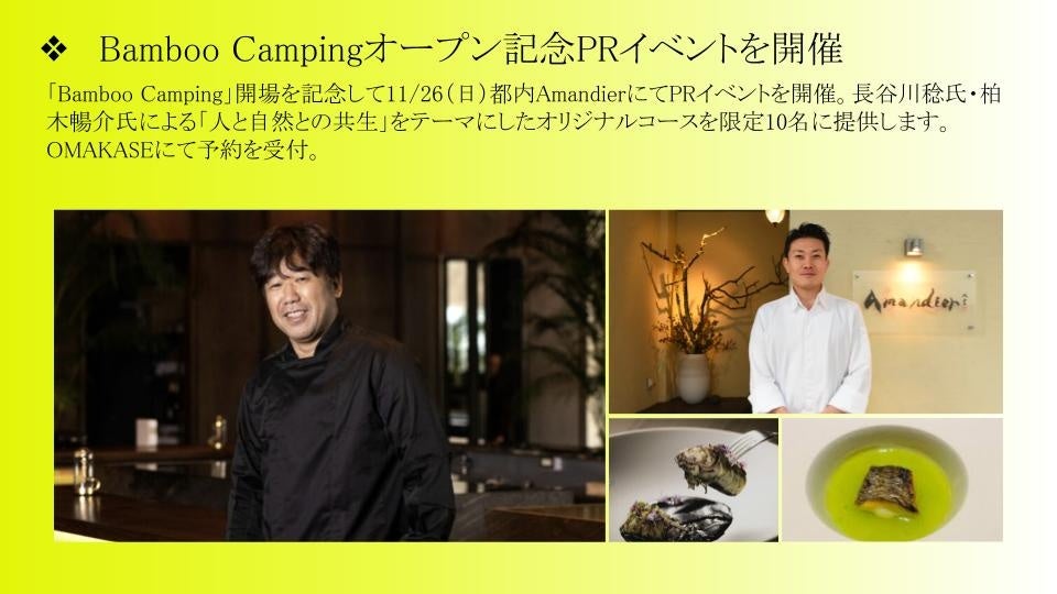 「放置竹林」をインバウンド専用のアドベンチャーツーリズム拠点として再生する新たなプロジェクトがスタート。11/26(日)に都内Amandierにて日本を代表するフレンチ料理人長谷川稔氏のイベント開催!