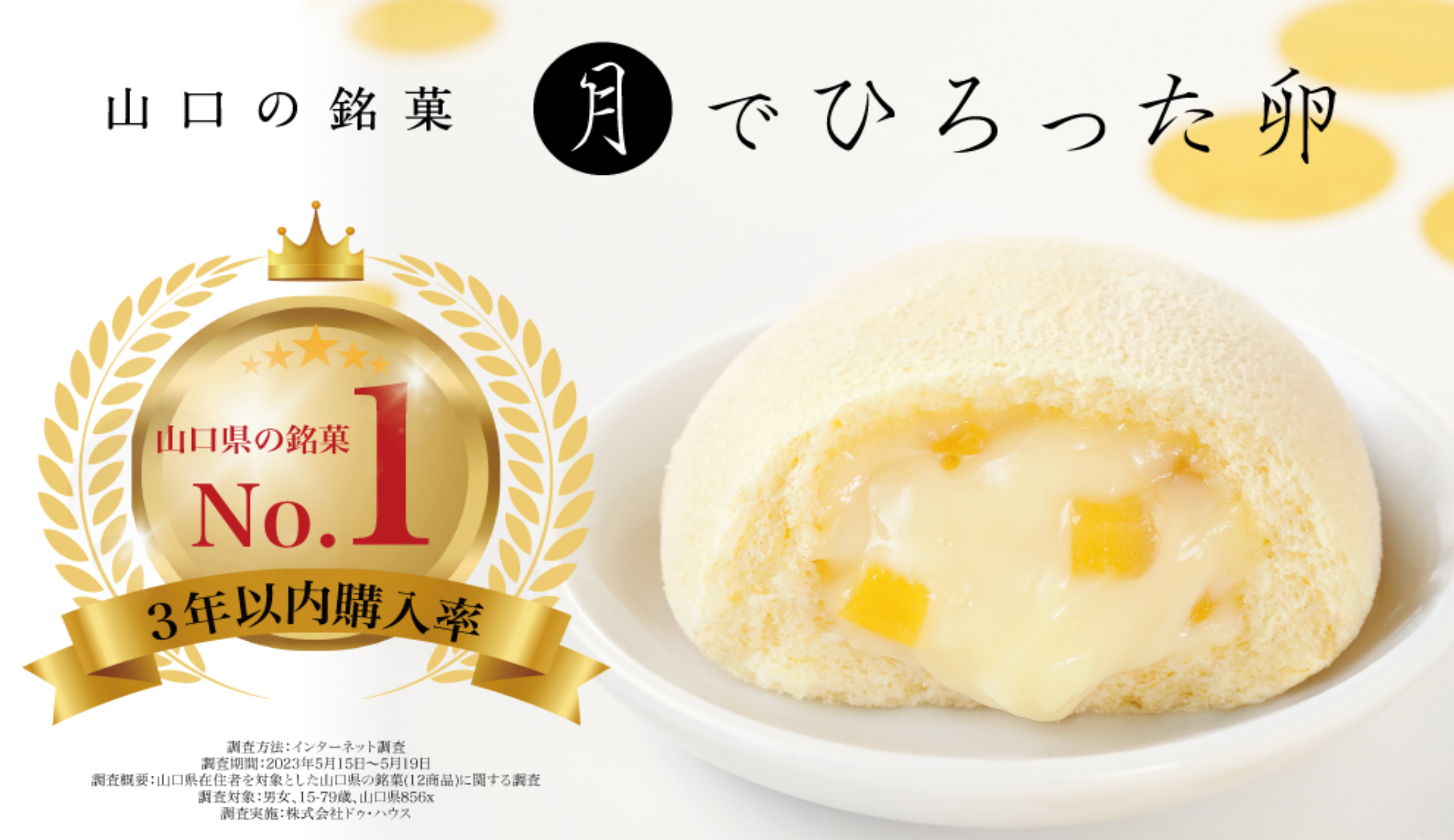 月でひろった卵は、1986年に発売した、同社の看板商品。多くのバリエーションを展開し、累計生産個数は2023年10月31日時点で1億4,910万個を突破。山口県の土産菓子として愛されています。
