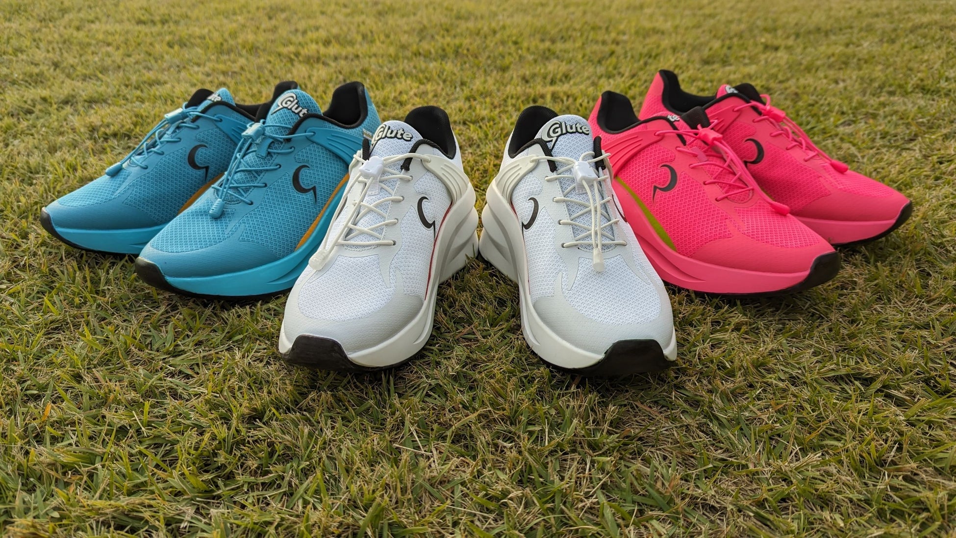 「GLUTE MAX-RUNNING」(左から)ターコイズ、ホワイト、マゼンタ
