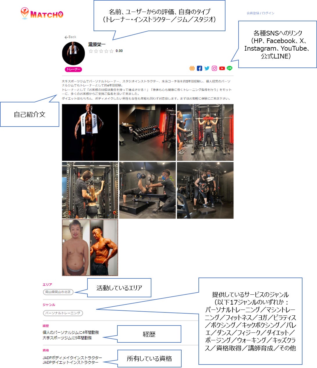 株式会社MATCHO(本社:広島県広島市中区、代表:石森 裕美代表取締役社長、以下、MATCHO)は、2024年1月25日に、個人のトレーナーやインストラクター、ジムやフィットネス関連団体などを幅広く紹介するウェブサービス、トレーニングマッチングサービス「MATCHO(*1)」を開始しました。MATCHOが掲載している個人トレーナーおよびインストラクターの人数は、現存する類似サービスの中で日本最大(*2)となります。