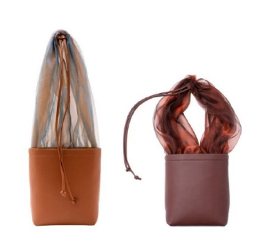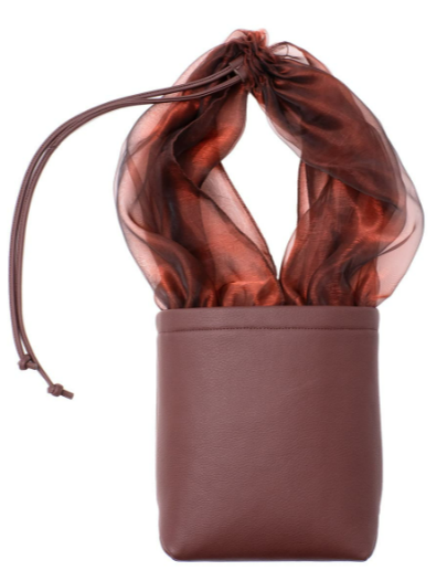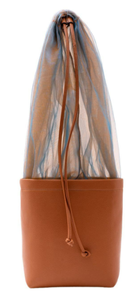 バッグのショルダーをふんわり肩に掛かる繊細なタックたっぷりのチュールにしました。偏光チュールは、meduse(クラゲ)のように光の入り方で表情を変えます。ショルダー幅を調整できるので、太めショルダ一風にも、ボリューミーなストール風にも使用いただけます。