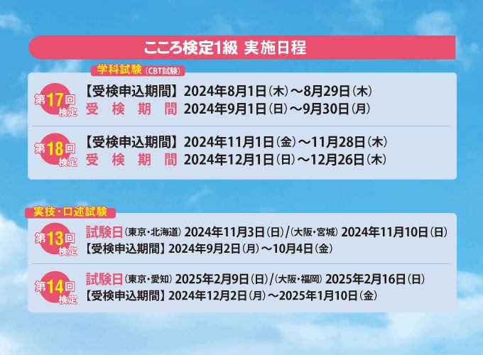 一般財団法人 日本こころ財団(東京都新宿区:理事長 別府武彦)は2024年(令和6年)度の「こころ検定(文部科学省後援)試験日程」を公表しました。