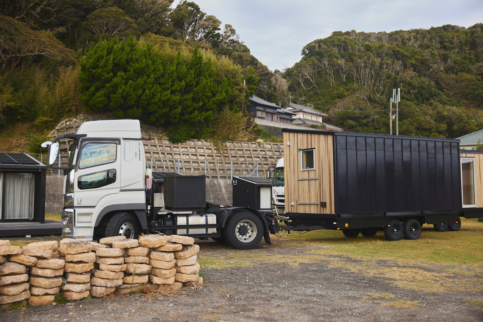 エネルギーや生活水などを既存のライフラインに依存しないモバイルユニットを移設・組み合わせることでインフラの整わない場所でも自由自在に暮らすことのできる移動式住宅の実証実験を2023年3月より行っております。