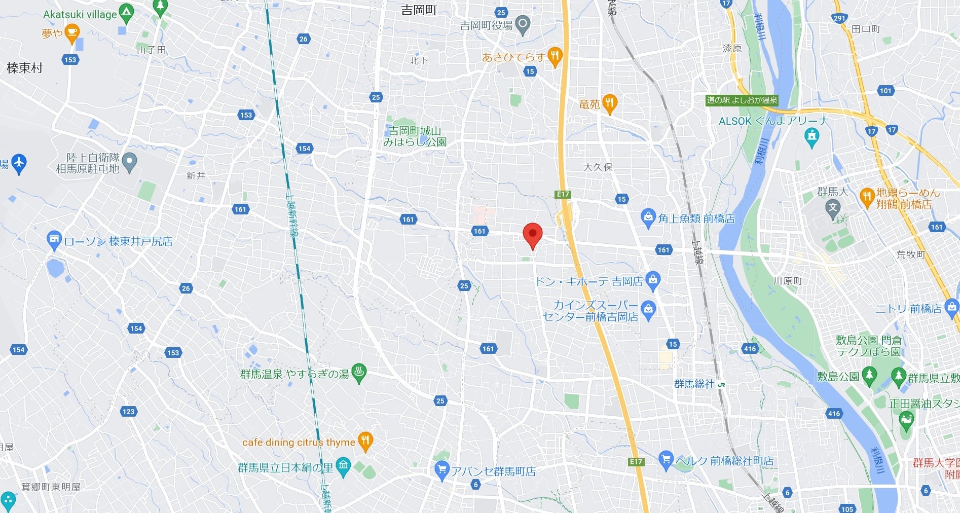 電車・徒歩でお越しの場合:JR上越線「群馬総社」駅より徒歩約43分