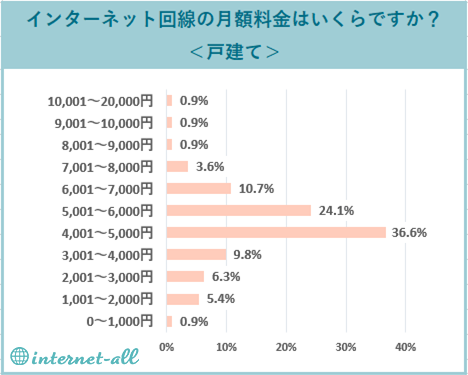 ・戸建てに住んでいる人のインターネットの月額料金は『4,001~5,000円』が一番多い