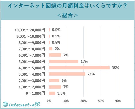 インターネット回線の月額料金は、『4,001~5,000円』が最も多く、35%を占めています。