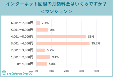・マンションに住んでいる人のインターネットの月額料金は『3,001~4,000円』が一番多い