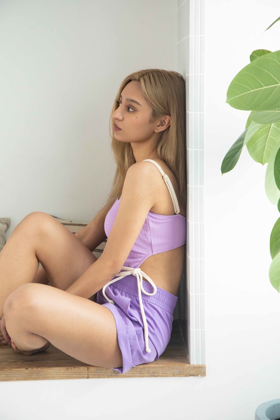今シーズンでは、生地をジャガードリブに改良したことでより良い着心地とこなれ感がプ ラスされました。伸縮性があり安定感もあるので、肩紐ストラップを外してチューブトッ プとしてもご着用いただけ、スイムウェアだけでなく日常のコーディネートとして様々な シーンでご使用いただけます。