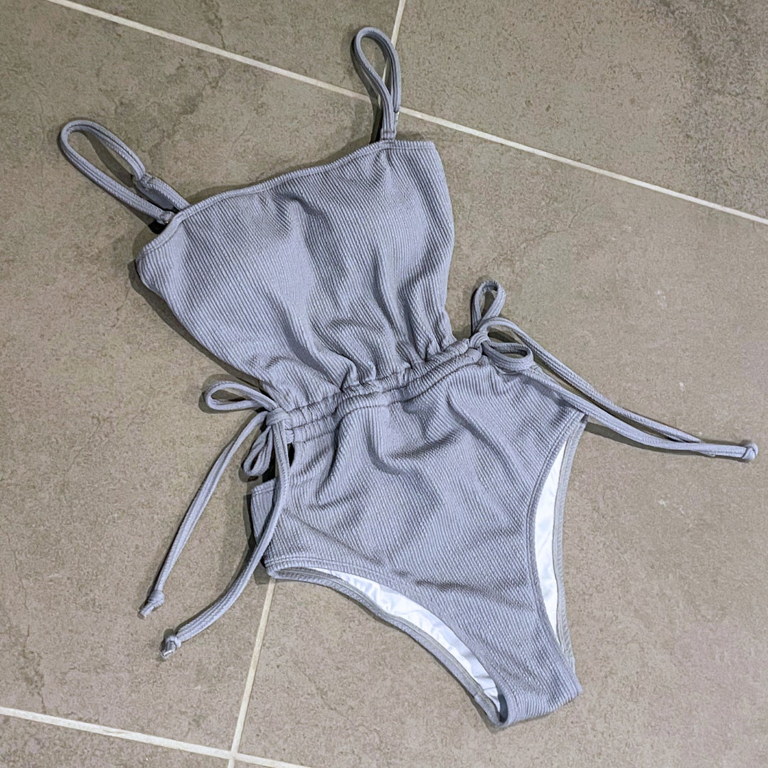 正面から見ると露出がないデザインとなっていますが、後ろから見るとセパレートのスイ ムウェアにも見えるこだわりのデザインとなっています。サイドのカッティングと調節可 能なウェストリボンでスタイルアップ効果があり自然に美しいシルエットを演出するた め、カラースイムウェアに抵抗がある方でも楽しめるシリーズです。ショートパンツやデ ニムなどと合わせて普段使いとしてもおすすめです。
