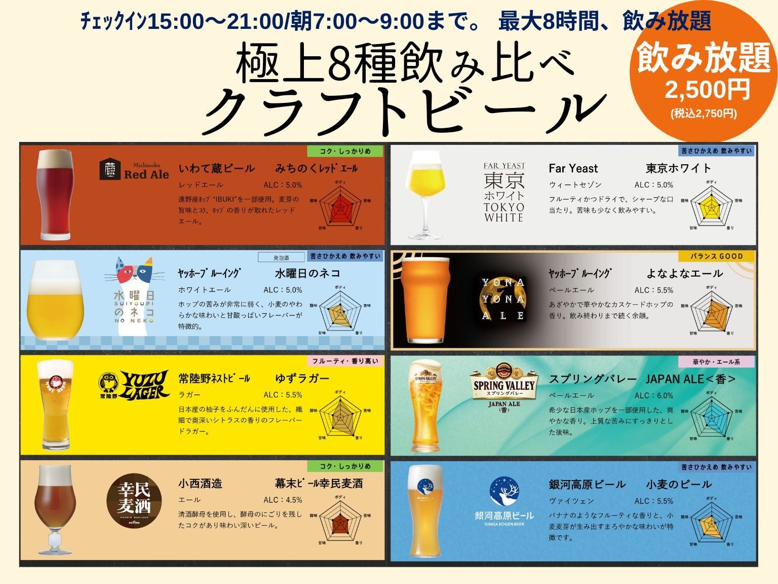 クラフトビール8銘柄の飲み放題 2,750円(税込)/名