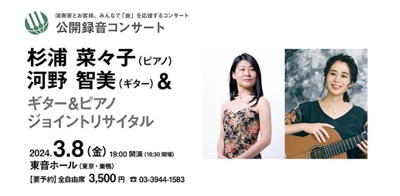 》、ブローウェル《三つのコンサート用舞曲》などの貴重なギターとピアノのデュオ作品を河野と杉浦が演奏します。この演奏会の記録はそのままピティナの公式YouTubeチャンネルの動画コンテンツとなり、ピティナピアノ曲辞典に参考動画として掲載されます。「ピアノとギター」という二つの世界を繋ぐ意義深い試みとなることでしょう。