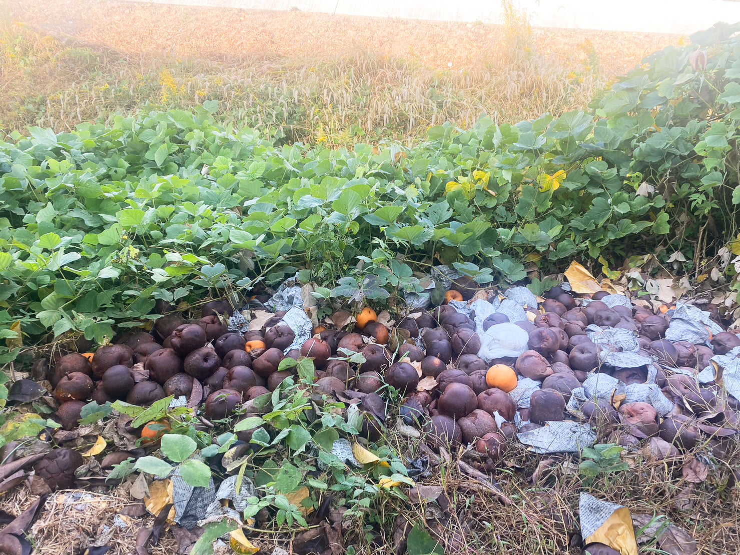 そんな荒尾梨ですが、地球温暖化の影響などで生産量の約2/3が廃棄される厳しい現状にあります。おびただしい数の規格外梨が集められ、当たり前のように廃棄されているのです。
