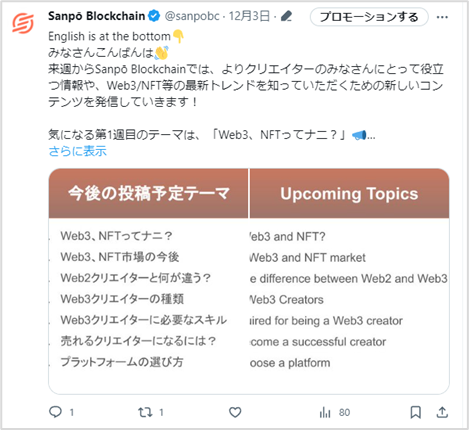 これまでSanpō-BlockchainのXは、主にWeb3領域におけるユーザーやクリエイター向けに情報発信を行なってきましたが、今後はすべての領域におけるクリエイターの方を応援するべく、情報発信のフォーカスを広げて参ります。