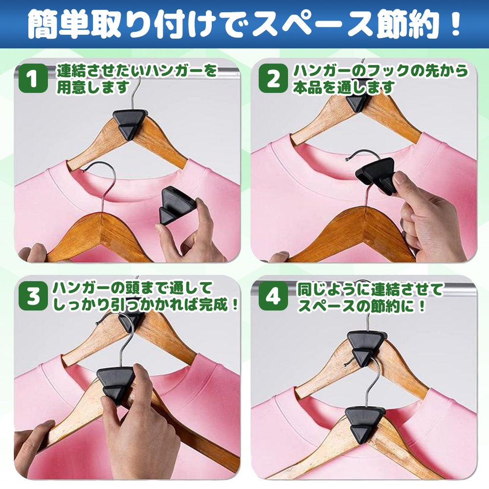 ハンガーに【スキマ△】(すきまさんかく)を通すだけです。