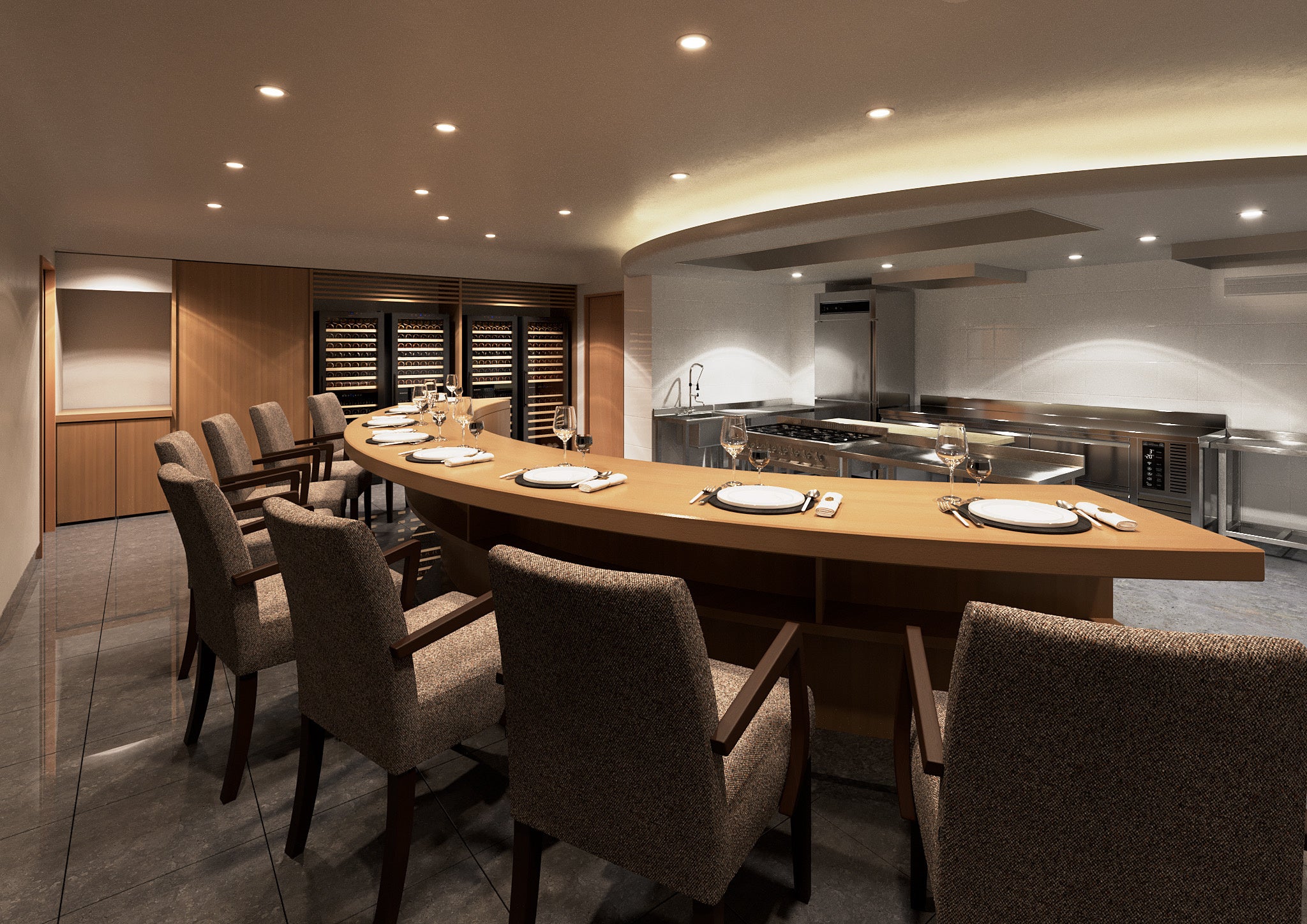 都内の様々な名店を立ち上げたオーナーシェフ古賀哲司によるフランス料理をベースとした多様な技法を駆使して、国内外の旬の”恵み”の美味しさを切り取り、”伝統と現代感覚の融合”、”フレンチの凝縮と日本的な旨味を反映させたコース料理を表現します。日本が誇る伝統工芸、福井県の龍泉刃物、佐賀県の有田焼、新潟県の漆器等を用い、フルオープンキッチンから織りなす手間ひまをかけて仕立てた美味しさにこだわったイノベーティブフレンチをお楽しみいただきます。