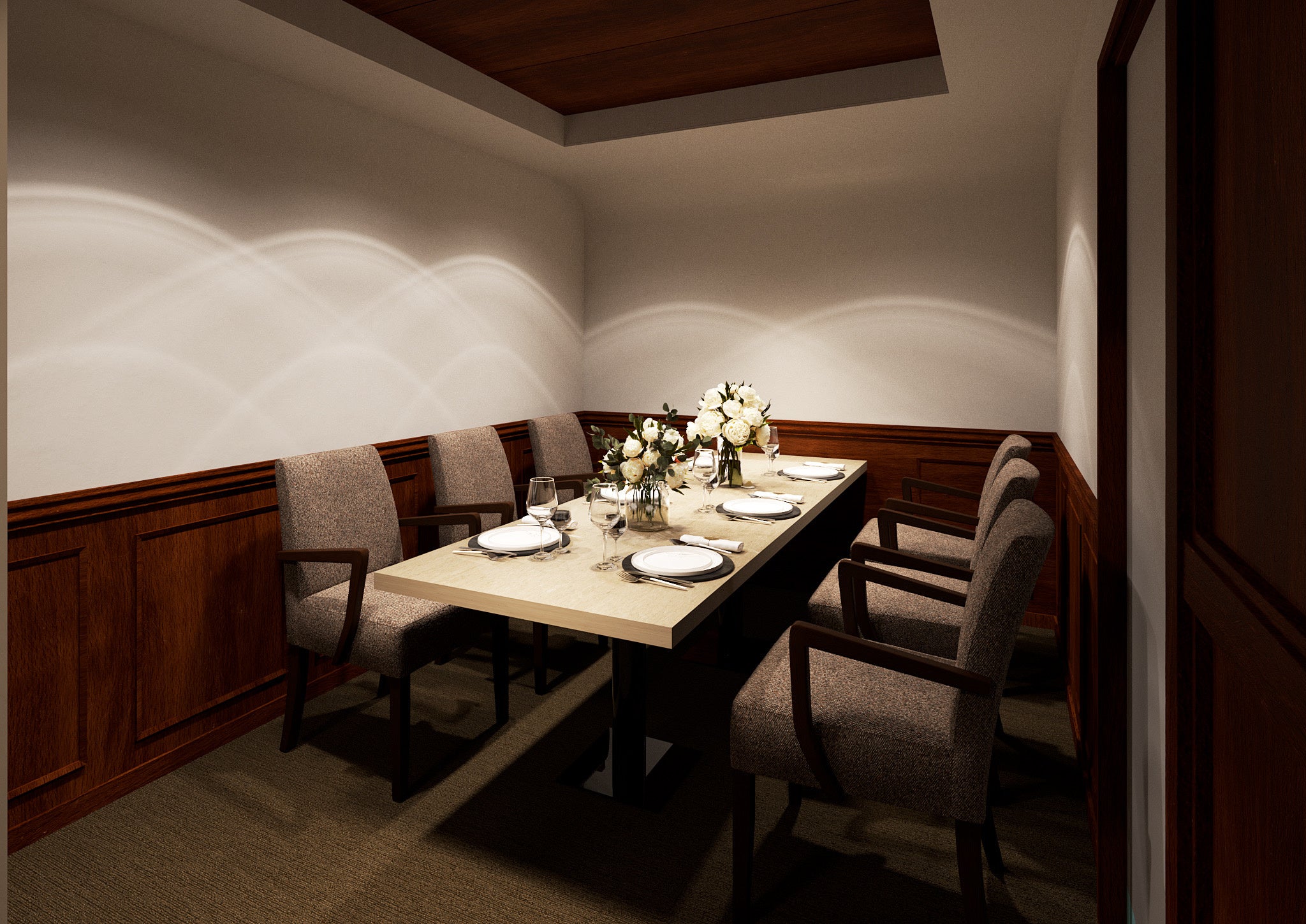 鮨さいとう、日本橋蛎殻町すぎたなどの名店を設計した(有)板井工務店により、“四季折々を彩る和”いうコンセプトに沿った世界観を表現しました。どこか落ち着く新富町の優しい街並みにも寄り添う独自の空間です。