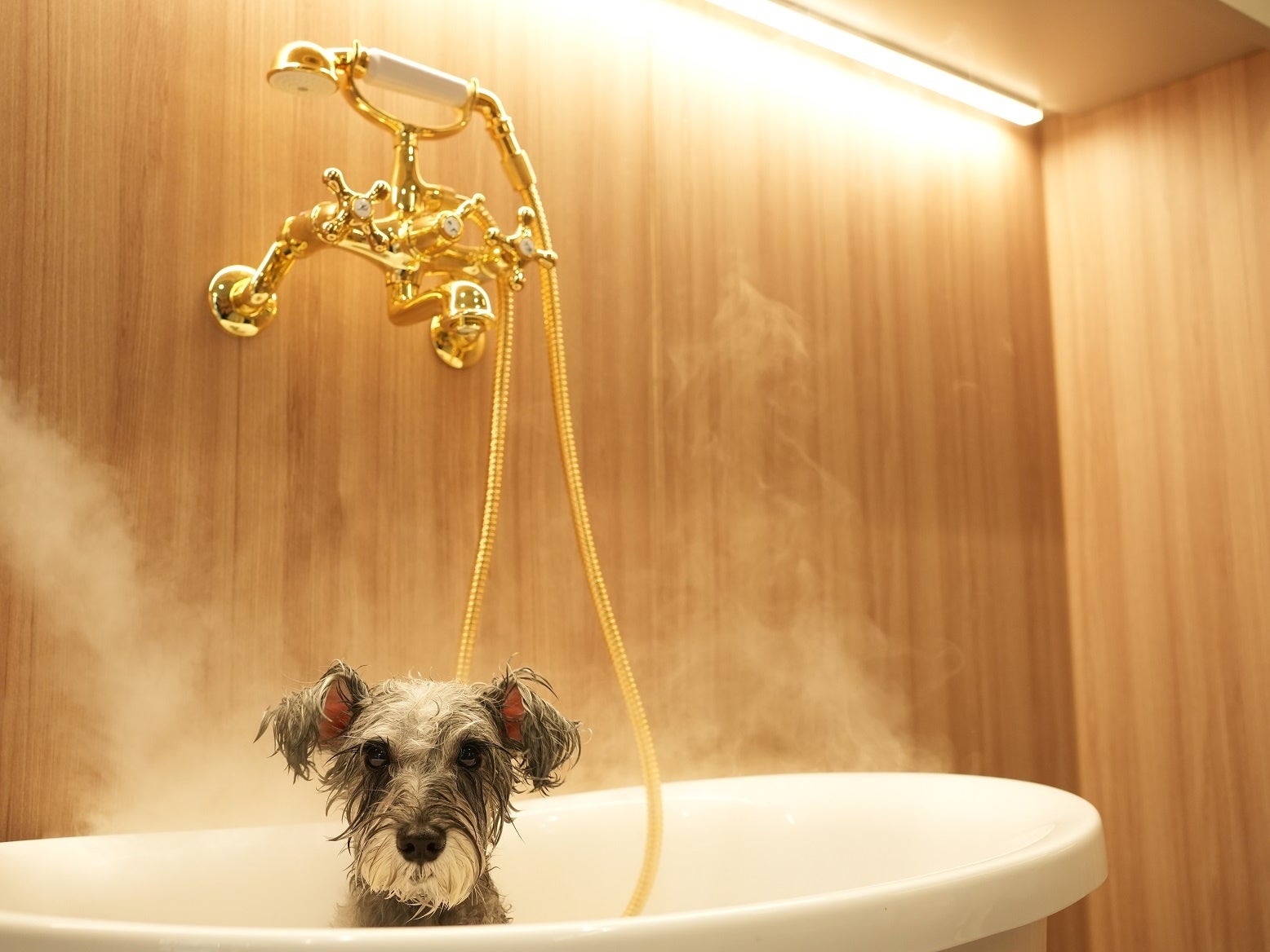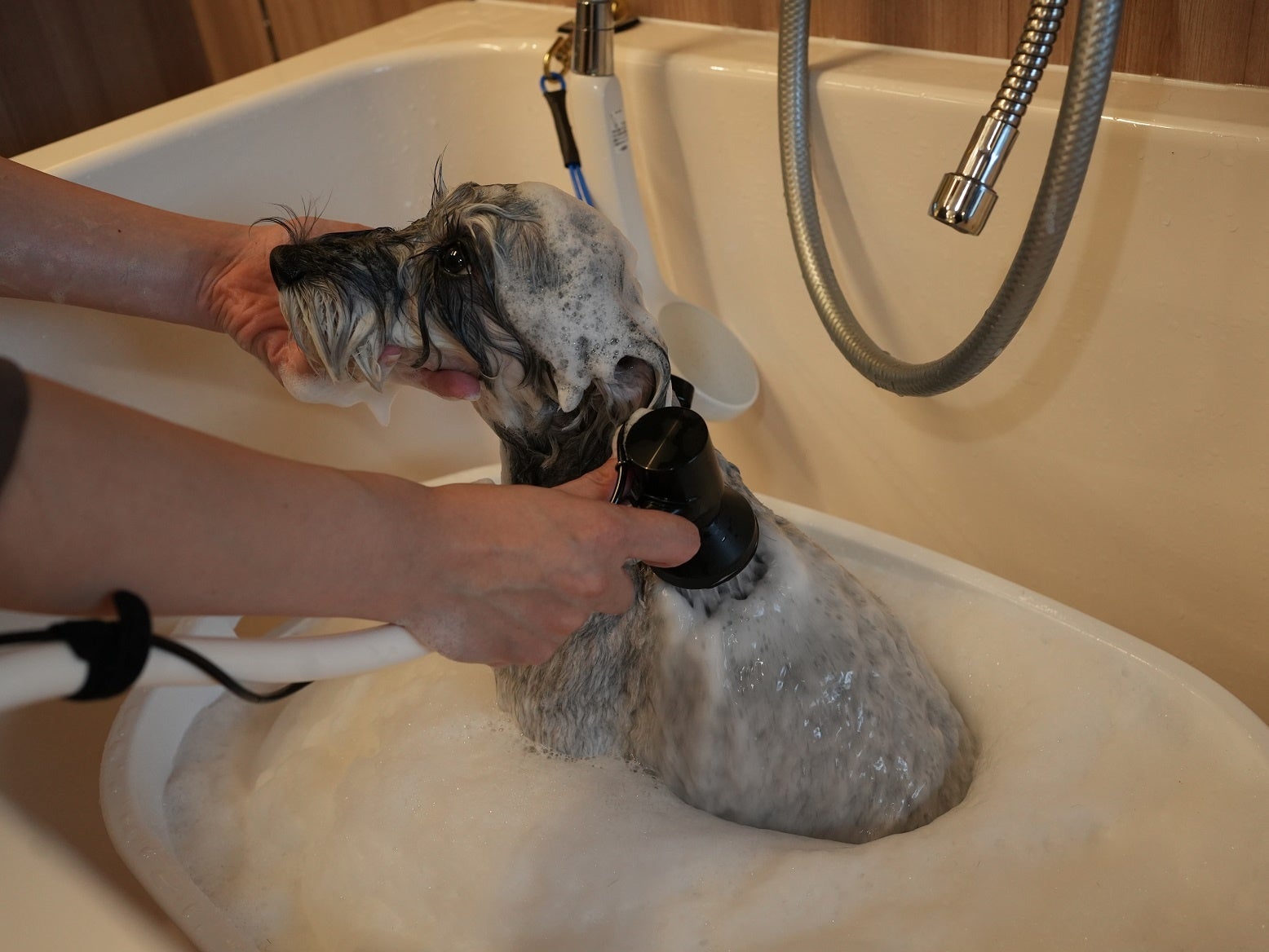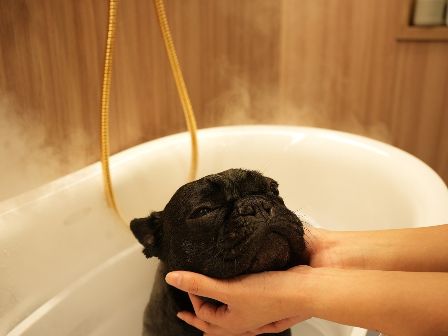 犬の皮膚は私たち人間の約1/3ほどの厚さしかありません。そのため刺激の強いシャンプーを使ったり、ゴシゴシと粗く洗ったりすると炎症や皮膚トラブルを招くことがあります。当店ではシャンプーソムリエ監修の低刺激シャンプーとマイクロバブルのマシンを使用し、皮膚や被毛を優しく仕上げます。また温浴やスチーマーを使ったコースもあり、しっかり保湿を行うことで皮膚や被毛を美しく仕上げるとともに、病気や炎症への予防に繋げております。