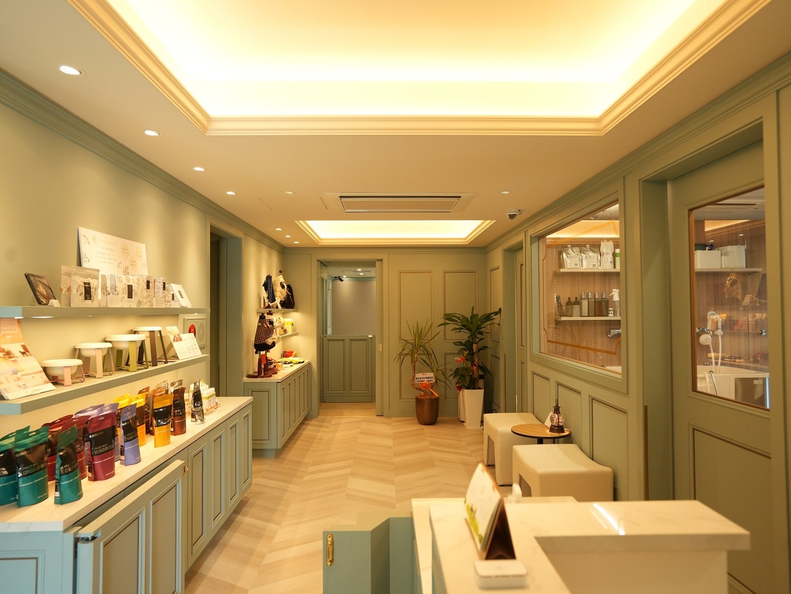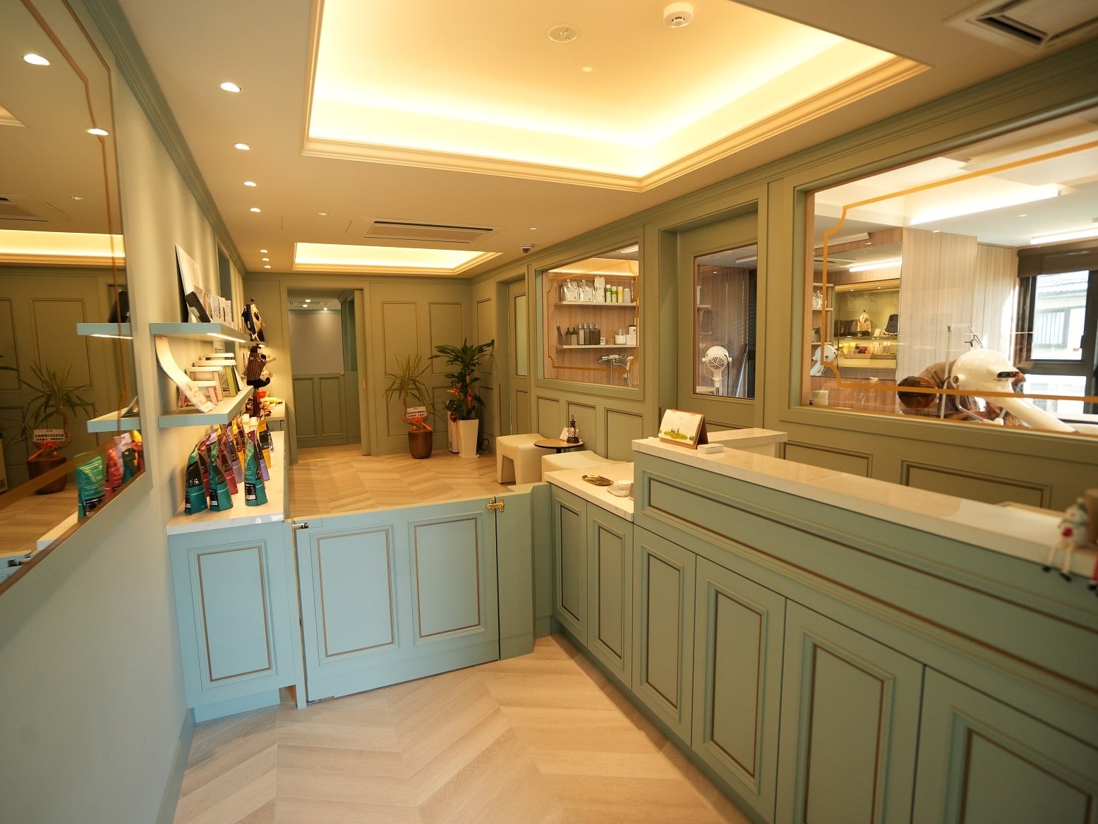 グリーングレーをベースカラーとした店内にはInstagramなどSNSでも映えるスポットも多数あり、愛犬のかわいい写真を収めることができます。