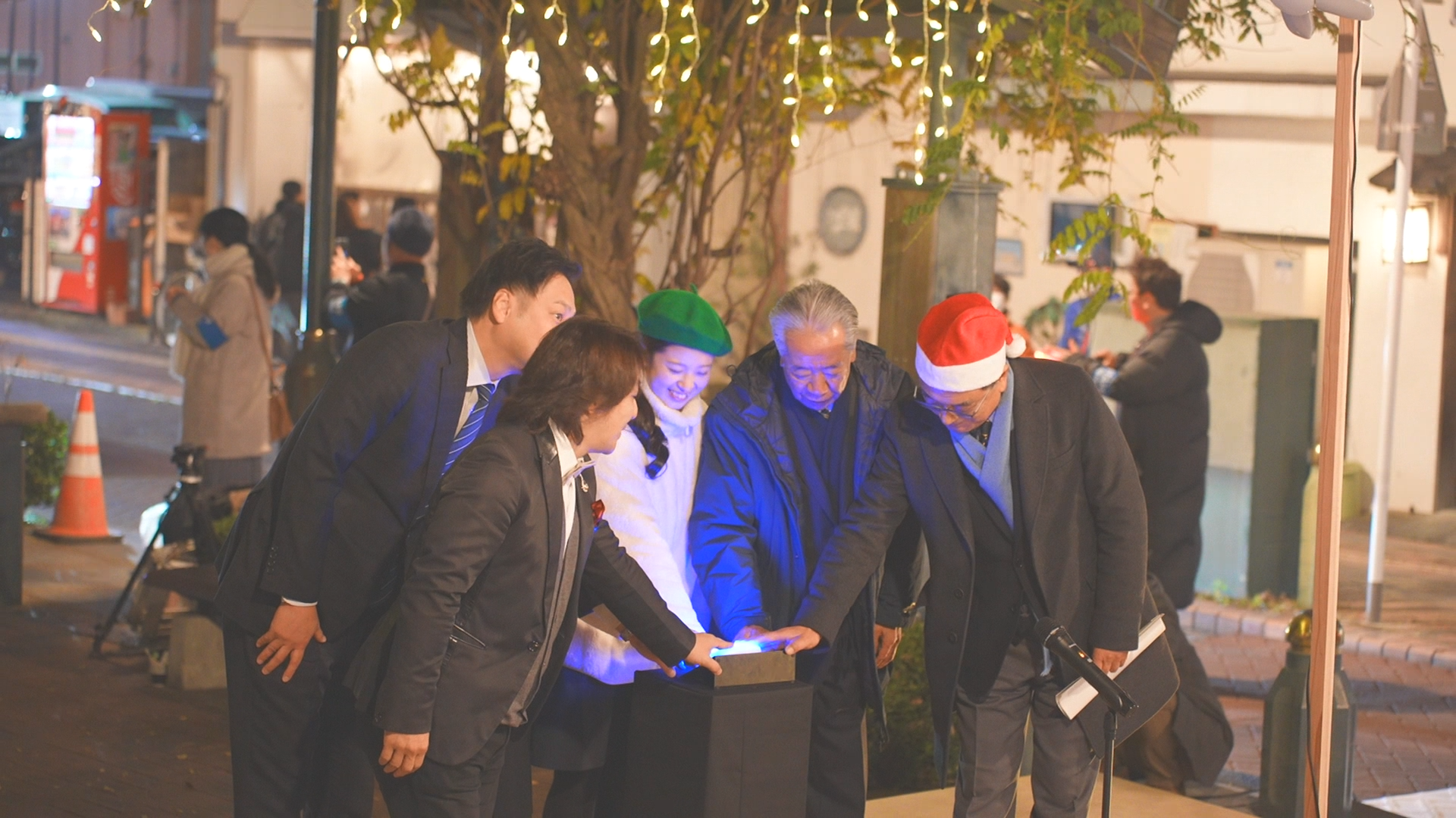 点灯式には、熊谷市長の小林哲也氏、熊谷商工会議所会頭の大久保和政氏をはじめ、多くの来賓にご出席いただきました。さらに、バリトン歌手・原田勇雅さんと熊谷少年少女合唱団によるクリスマスミニコンサートが行われ、会場が盛り上がりました。点灯式イベントは星川夜市とともに会場に賑わいを創出し、冬の夜をロマンチックに彩りました。
