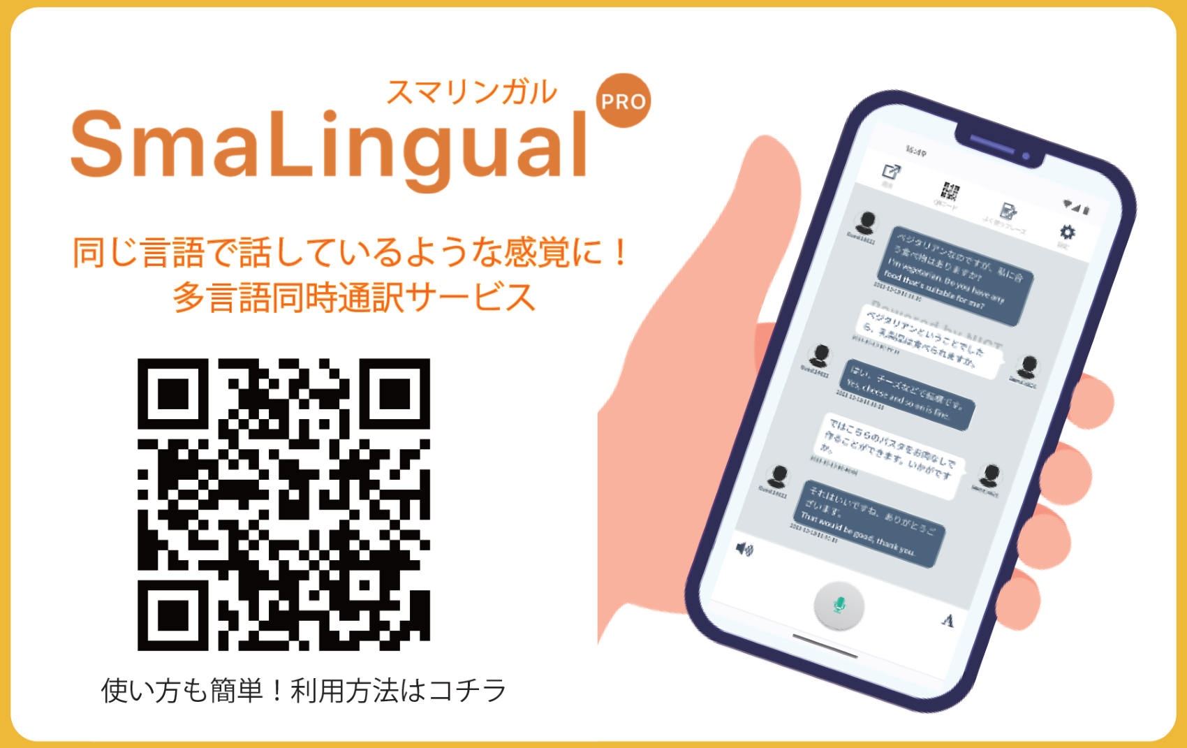SmaLingual (スマリンガル)は、アプリケーションのダウンロードが不要で、誰でも簡単に利用可能です。観光需要だけでなく、公共機関等でもご利用いただけるほか、増加している就労や留学目的で来日する方々とのコミュニケーションにも有効です。