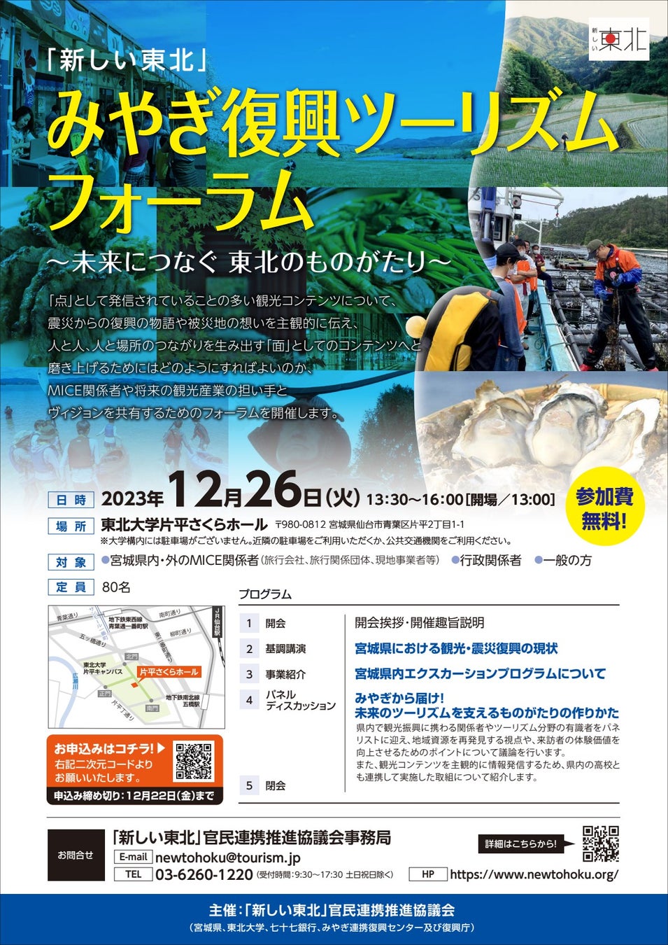 「新しい東北」みやぎ復興ツーリズムフォーラム~未来につなぐ 東北のものがたり~ 開催及び参加者募集について